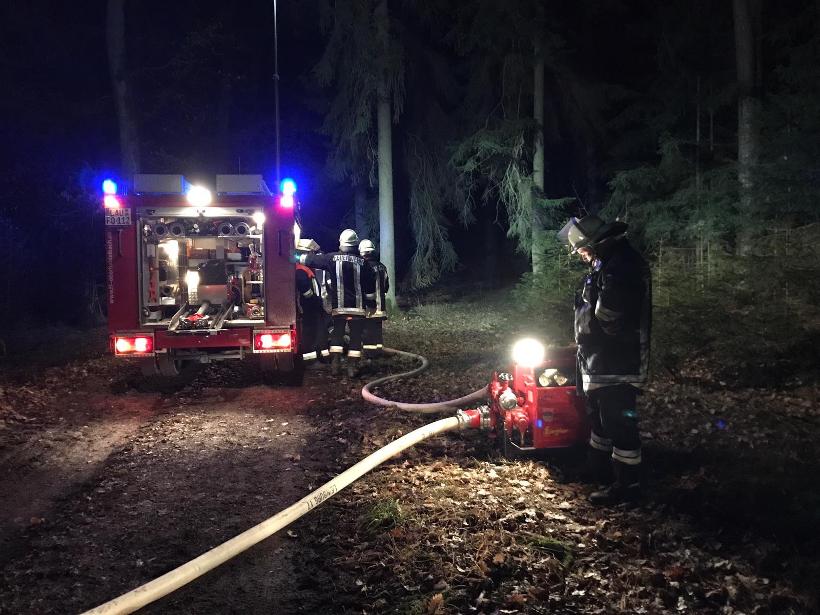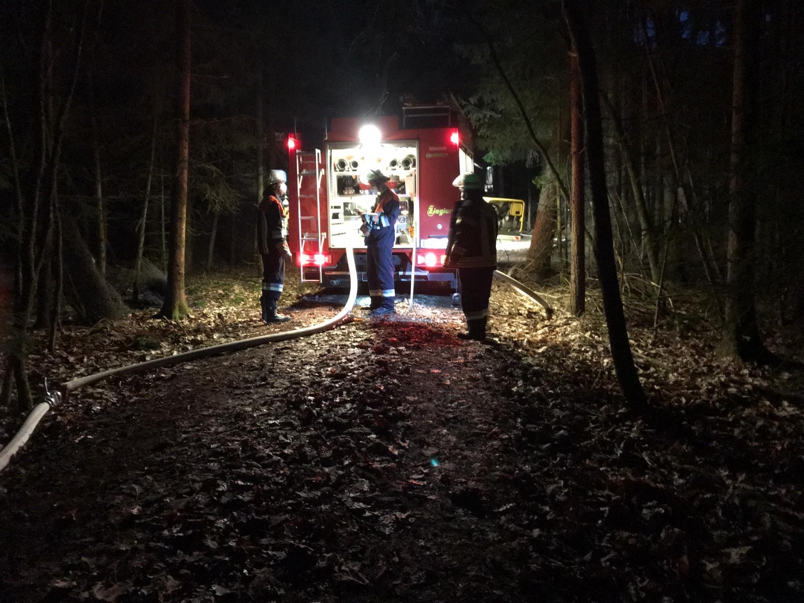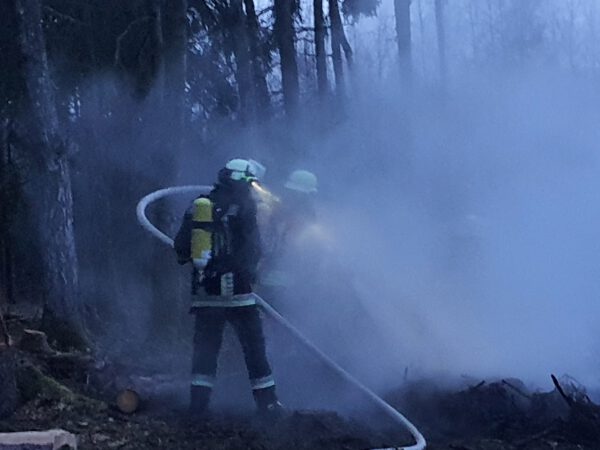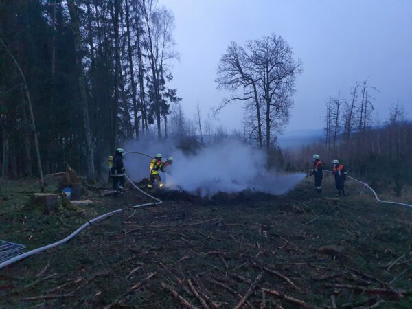 Am 10.03.2021 wurden wir zu einem Waldbrand zwischen Gersberg und Weigenhofen alarmiert. Es zeigte sich folgendes Bild; Ein unbeaufsichtigtes Waldarbeiterfeuer brannte und drohte auf umliegendes Reißig überzugreifen. Ein Trupp unter PA begann sofort mit den Löscharbeiten. Die Kameraden aus Oberhaidelbach und Leinburg unterstützten uns mit weiteren Atemschutzgeräteträgern und förderten vom Hydranten das Wasser zur Einsatzstelle. Aufgrund der unbekannten Wassersituation und den Mangel an Geräteträgern, wurde die FF Diepersdorf nachalarmiert. Nach ca. 2 Stunden konnten wir uns wieder auf den Weg nach Hause machen. Das herstellen der Einsatzbereitschaft dauerte dann noch eine halbe Stunde.