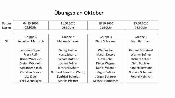 Übungsplan Oktober
